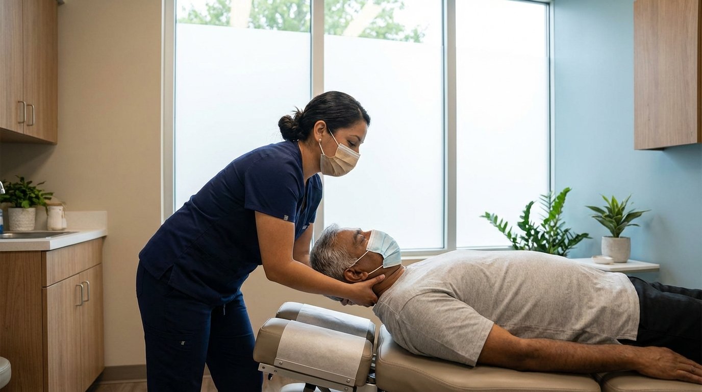 Gentle spinal manipulation to restore proper neck alignment